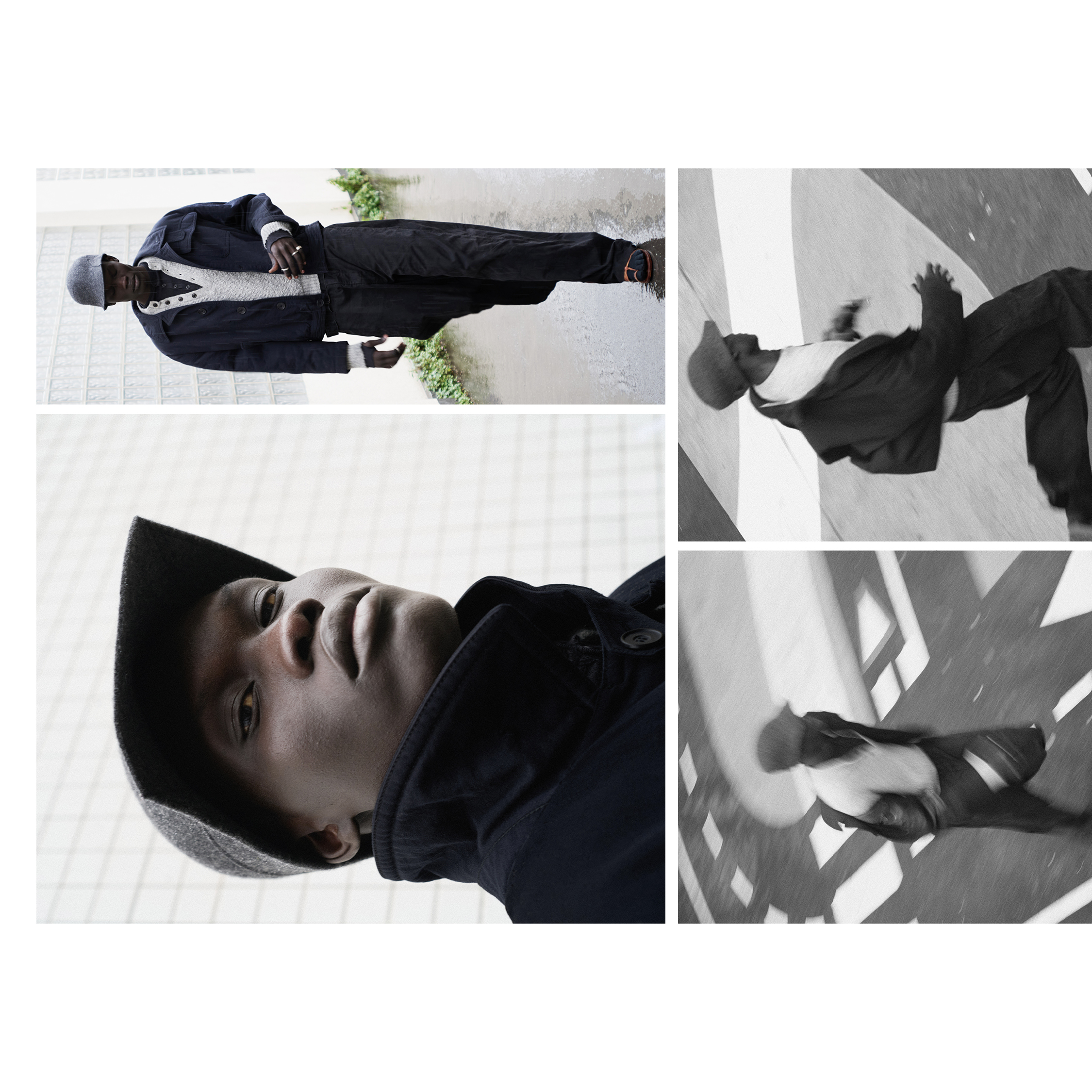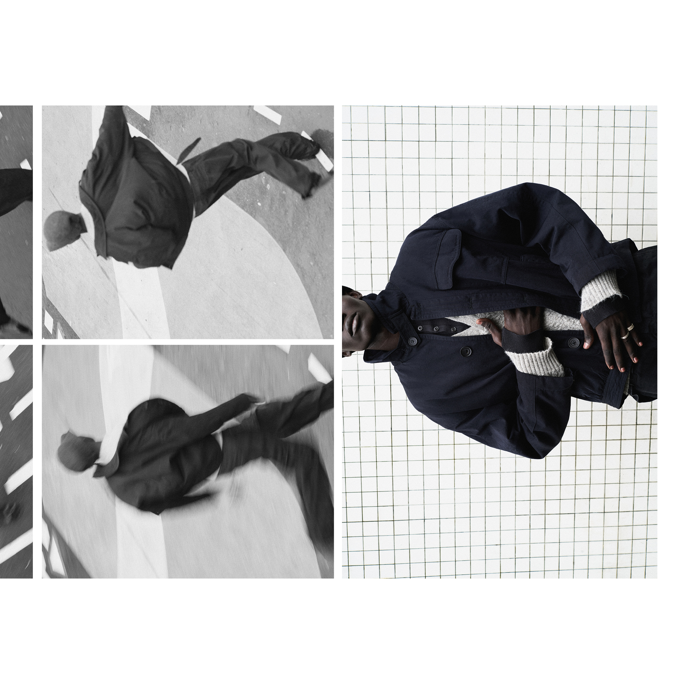 Le noir et blanc, partie intégrante de la série, approfondit cette lecture en concentrant le regard sur la dynamique du geste et la physicalité du vêtement.